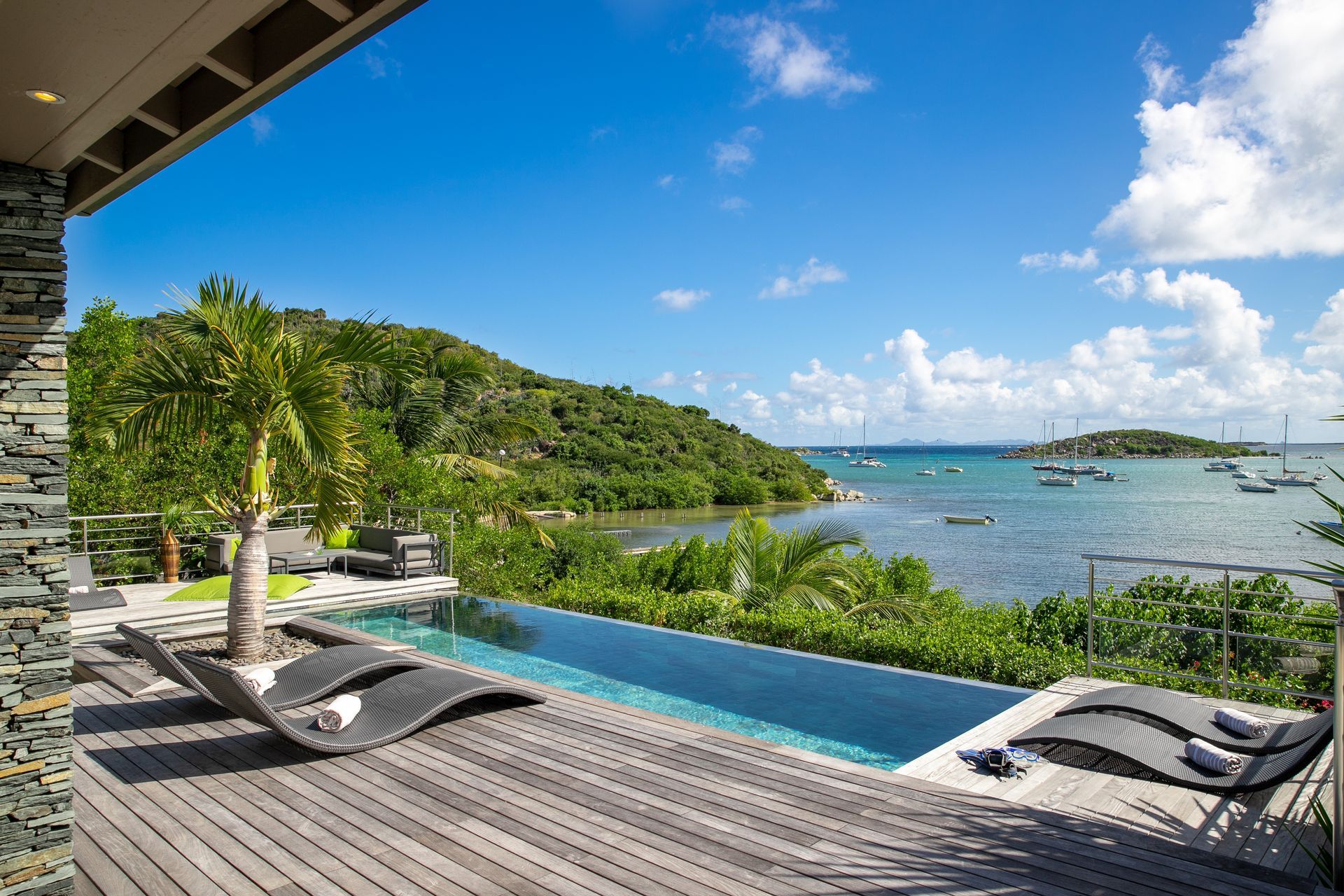 Il s'ouvre directement sur la terrasse bien exposée avec une vue magnifique sur la mer des Caraïbes, l'îlet Pinel et la baie orientale.